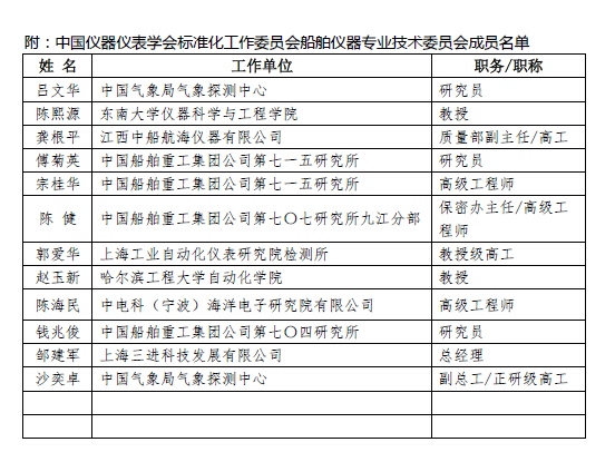 附件:关于“中国仪器仪表学会标准化工作委员会船舶仪器专业技术委员会”成立的通报下载