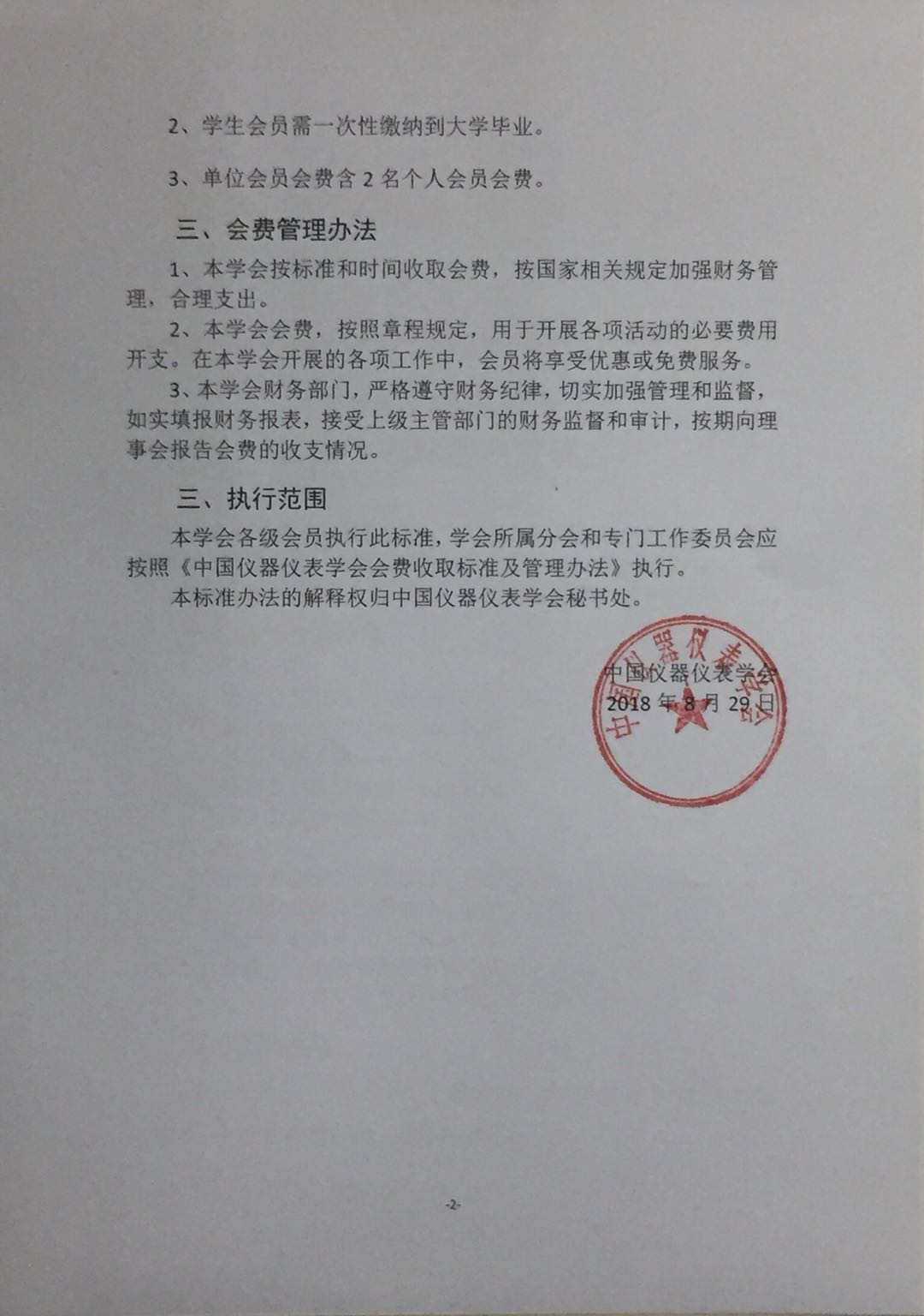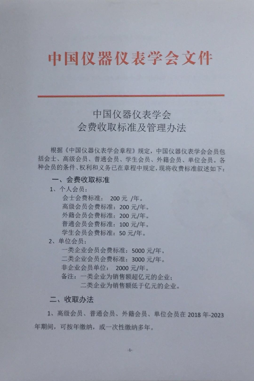 中国仪器仪表学会会费收取标准及管理办法(换届后新版)