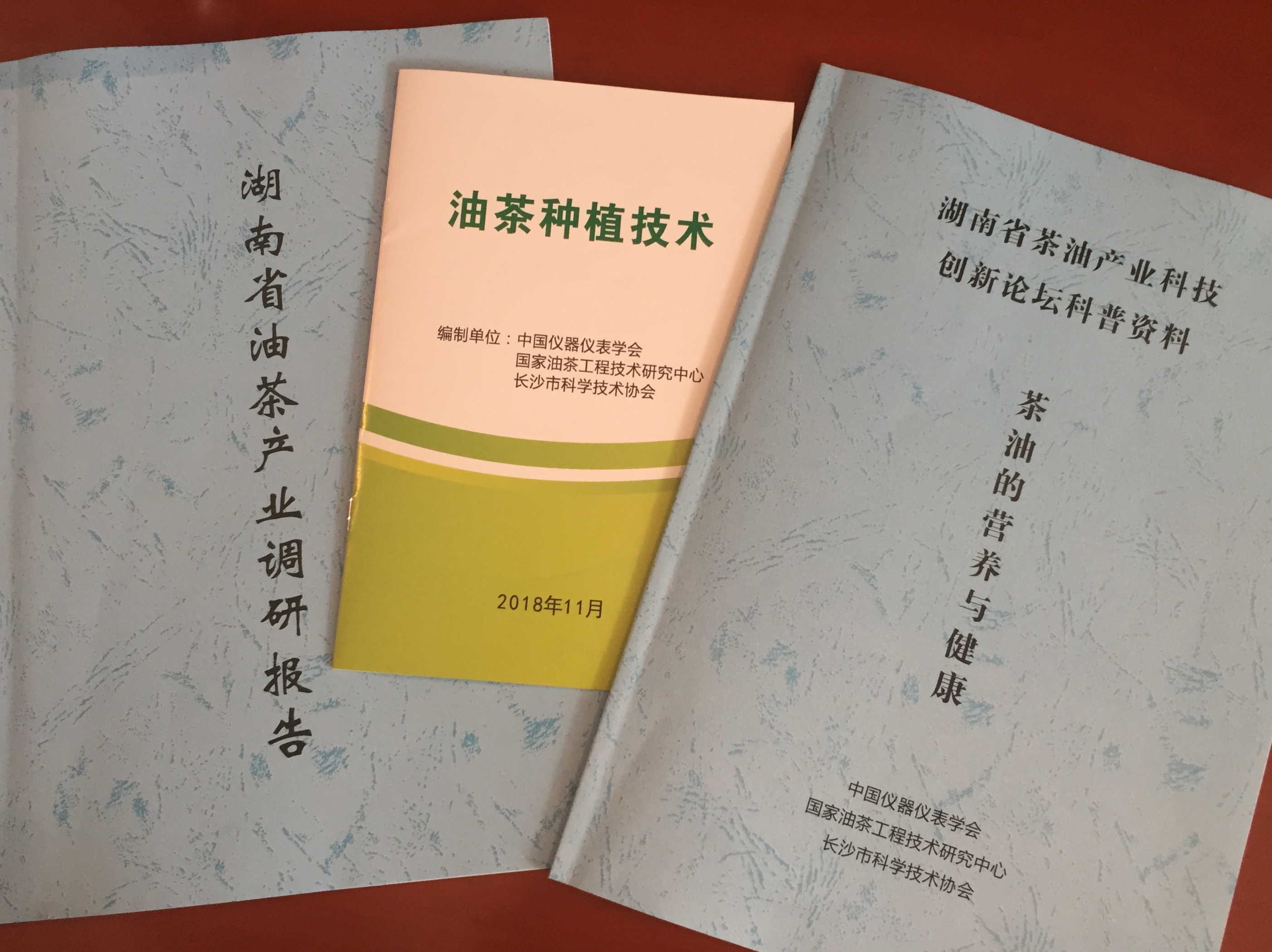 会议上发布了由国家油茶工程技术研究中心陈永忠教授及其研究团队组织编撰的两本科普宣传册,一本面向社会公众科普油茶(《茶油的营养与健康》);另一本面向油茶种植单位及个体分享了该中心的种植技术研究成果(《油茶种植技术》)。会议还发布了由主办单位组织专家编写的《湖南省油茶产业调研报告》。该调研报告是在今年主办单位组织专家进行了问卷调研、实地走访调研湖南油茶厂家及种植基地的基础上,用心编撰而成。以上三本手册都在会议期间免费公益性地发布给了与会的会议代表,每一本手册都倾注了专家们的研究成果和经验传授,专家们诚意地付出和心血都真诚地希望能帮助油茶厂家和种植基地解析产业面临的问题,并为产业的发展献言建策。