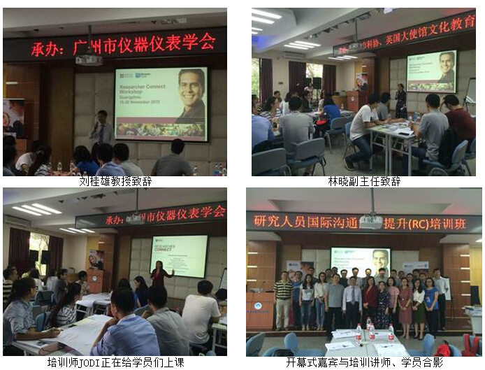 由广州市仪器仪表学会承办,英国大使馆文化教育处、广州市科学技术协会主办的2015广州研究人员国际沟通力提升(Research Connect)培训班(I)于11月18日上午9时在华南理工大学隆重举行开班仪式,广州市仪器仪表学会理事长刘桂雄教授、英国大使馆文化教育处教育项目周萌经理、英国总领事馆文化教育处华南区林晓副主任、广州市科学协会国际部刘萍科长等代表承办、主办各方领导出席开班仪式,共有来自广州地区的20名研究人员有幸获得本次免费培训机会。据了解,研究人员国际沟通力提升培训班(II)将于21日在中山大学开班。